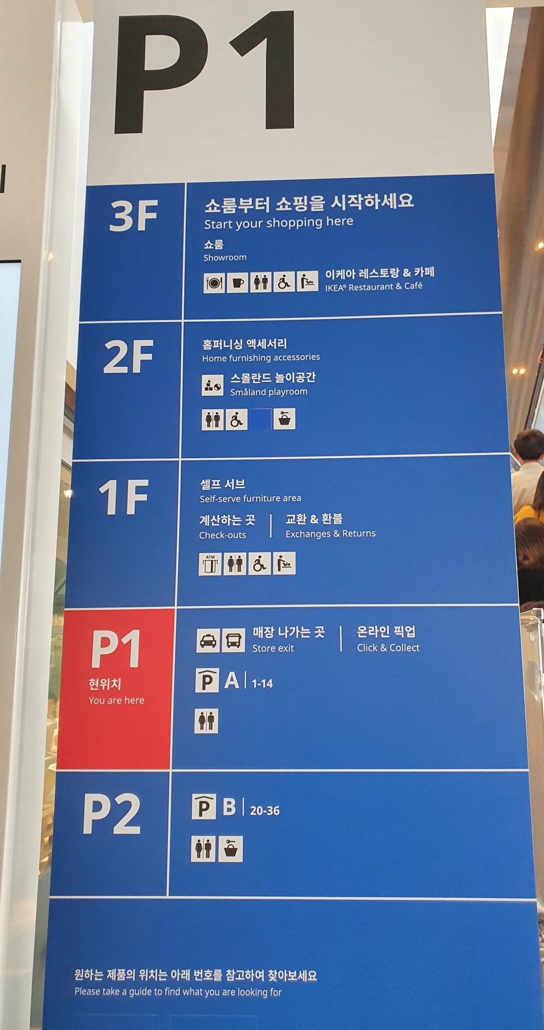 제가 있는 곳은 P1이고 3층부터 아래로 쇼핑후 계산은 1층에서 하는 방식이네요.